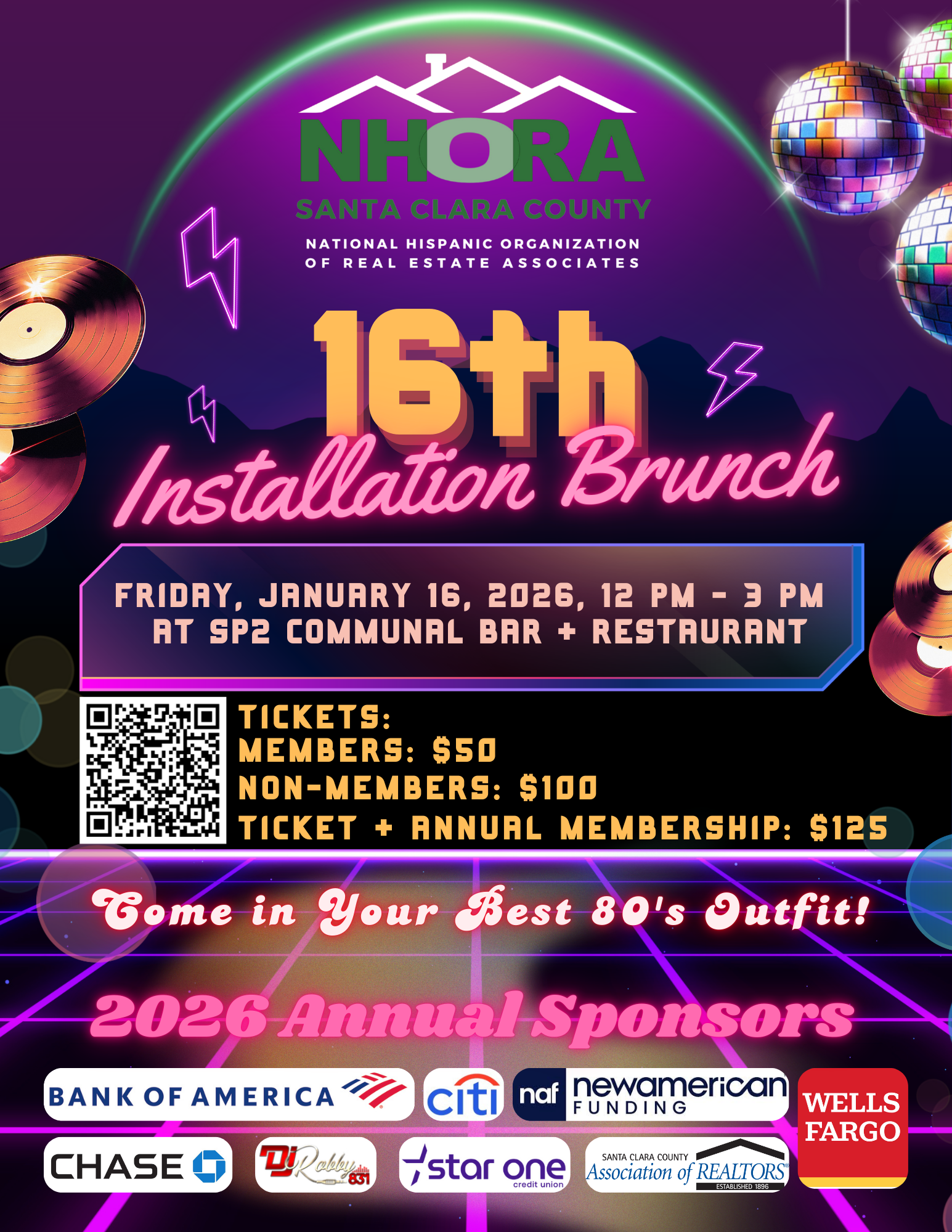 Join us for the NHORA Santa Clara County 16th Installation Brunch! Get ready to celebrate in true 80’s style as we install our new board and honor our amazing members. Come dressed in your best retro outfit—think neon colors, big hair, and all the 80’s vibes! Enjoy great company, delicious brunch, and a totally rad time together.